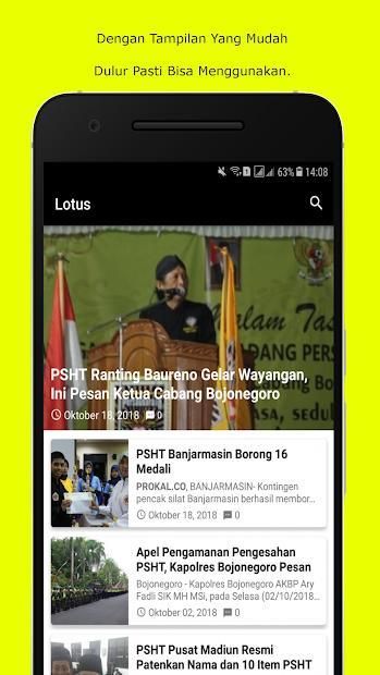 PSHT information application from all Regional branches in Indonesia, we are aware that Hoax is easy to enter PSHT which pits against PSHT families. With Lotus, PSHT information updates are more accurate, this application does not contain material about science taught on PSHT, but only updates from PSHT Worldwide