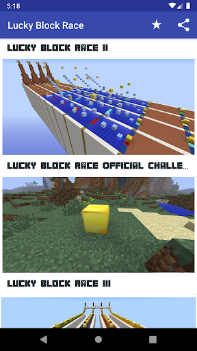 Just select your Lucky Block Race map favourite. Out app includes the best lucky block mod race collection maps.