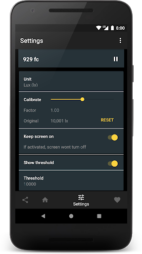 The light intensity values shown in this application are indicative and depend on your device. Some devices does not have a light sensor or the accuracy varies and therefore neither guarantee nor assume responsibility for the accuracy of the information.
