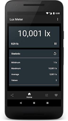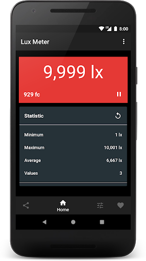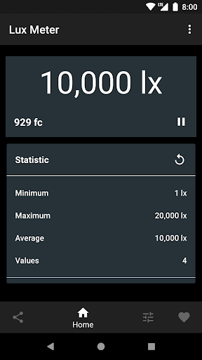 Lux Light Meter is a simple light meter for measuring illuminances by using the light sensor of your device. The light intensity is shown in lux and fc.