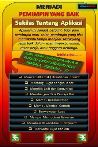 Aplikasi “Menjadi Pemimpin Yang Baik ini memberikan petunjuk bagi pembaca tentang bagaimana caranya seseorang Menjadi Pemimpin Yang Baik”. Setiap orang pasti ingin menjadi penguasa atau pemimpin namun tidak semua orang bisa menjadi pemimpin karna menjadi pemimpin adalah bakat namun sebaliknya menjadi pemimpin hebat bisa dipelajari. Machievelli misalnya sang pelopor teori kekuasaan dia mengatakan jika negara ingin kuat maka rakyat harus lemah, sebaliknya jika rakyat yang kuat maka negara akan lemah. teori machievelli ini masih digunakan oleh beberapa negara di dunia. Selain itu lambang Patung Spink yg ada didepan piramida mesir menggambarkan bagaimana seharusnya seorang penguasa yg kuat. Spink adalah patung singa berkepala manusia yang mengandung makna bahwa seorang penguasa harusk kuat seperti singa dan memiliki kecerdasan berpikir seperti manusia yg bijak, licik, serta terampil mengatur strategi mempertahankan kekuasaannya.