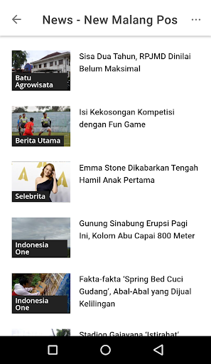 Berita yang disampaikan oleh POS MALANG BARU merangkumi politik, masalah sosial, pendidikan , dan sukan. Berita sukan mendapat bahagian yang cukup besar, terutama untuk Arema. Selain itu, New Malang Pos juga mempunyai banyak aktiviti cetak untuk pembaca setia dari semua peringkat umur dan latar belakang. Bagi orang muda, New Malang Pos mengadakan acara pelajar di Malang Raya.