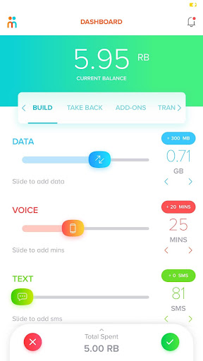 Aplikasi Mamen mengambil konsep "pelanggan tahu yang terbaik" ke tahap yang sama sekali baru.Cukup gunakan ciri Build untuk meluncur dan buat pelan mudah alih anda atau gunakan ciri Take Back untuk menukar sebarang data yang tidak digunakan, SMS atau minit suara yang dikreditkan kembali kepada anda.Simpan jejak penggunaan anda sambil menikmati fleksibiliti penuh.Anda berada dalam kawalan.Anda juga boleh menghantar atau meminta mata keseimbangan kepada rakan -rakan anda dan mengambil tawaran diskaun dari tawaran gaya hidup kami.