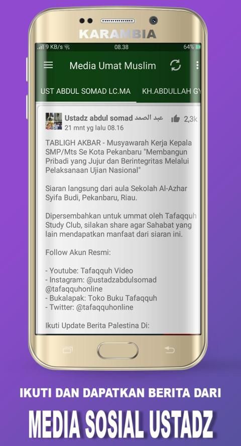 Aplikasi yang dibuat dari aplikasi Berita Umat Islam dengan penambahan sejumlah fitur-fitur bermanfaat, disamping memuat berita islam terkini dari berbagai website islam rujukan, pengguna juga bisa mendengarkan streaming radio islam indonesia, streaming tv islam, menonton ceramah ulama, membaca tausiah dan mengikuti agenda para ulama melalui akun sosial media nya.