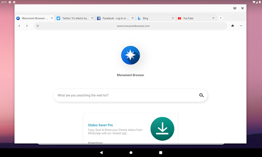 Dengan kurang daripada 2MB saiz, pelayar monumen menjimatkan banyak ruang pada peranti anda.
