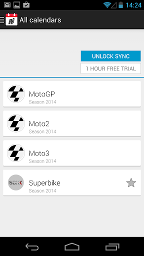 Sync all 2018 MotoGP races to your calendar application in the blink of an eye and in your local timezone. This way you won't miss a MotoGP race this season! Your calendar application is also automatically updated with results, so with MotoCal you're always up to date.