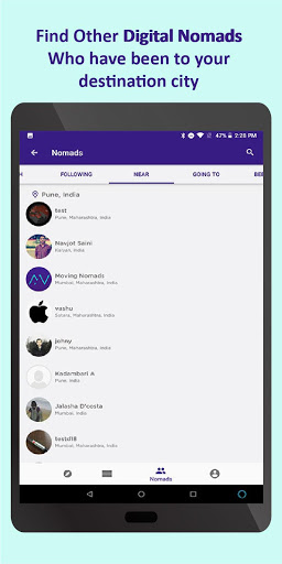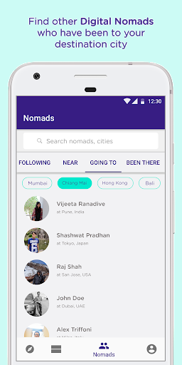 - Temui pelancong lain dan Nomad Digital dalam aplikasi berdasarkan bandar yang mereka lawati atau jika anda berada di bandar yang sama