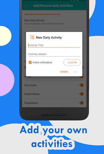 - Tambah aktiviti harian, mingguan atau bulanan anda sendiri dan anda boleh mengedit, memadam atau melumpuhkan mana-mana daripada mereka.