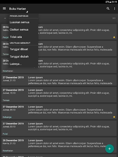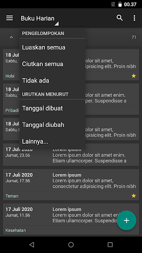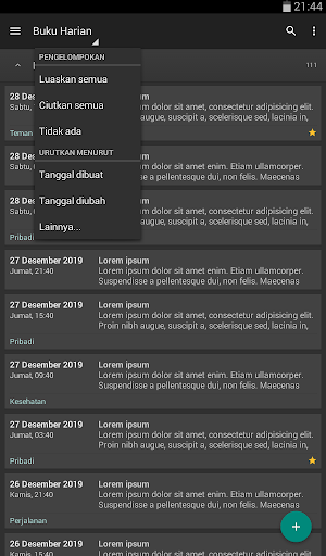 - Susun entri buku harian mengikut tarikh dibuat, tarikh dikemas kini, tajuk dan kategori