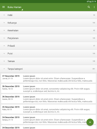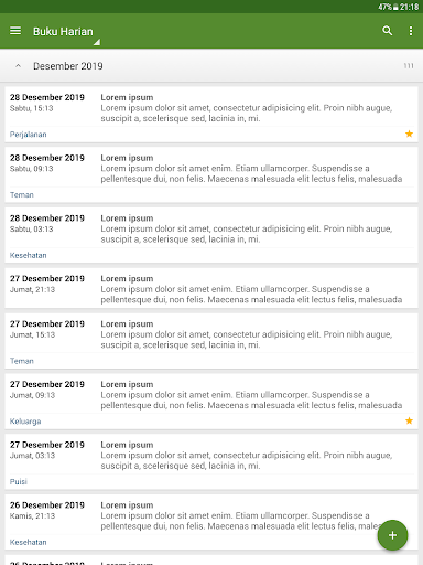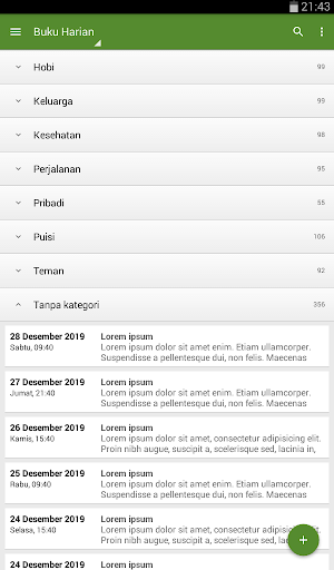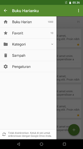 - Segerakkan entri buku harian melalui Google Drive antara semua peranti Android yang anda gunakan