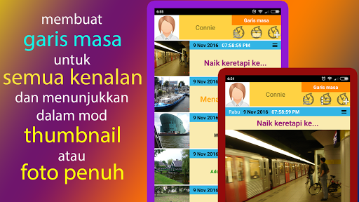 ● Membina garis masa tempatan untuk setiap kenalan dengan teks sahaja, foto sahaja atau kedua-dua teks dan foto .