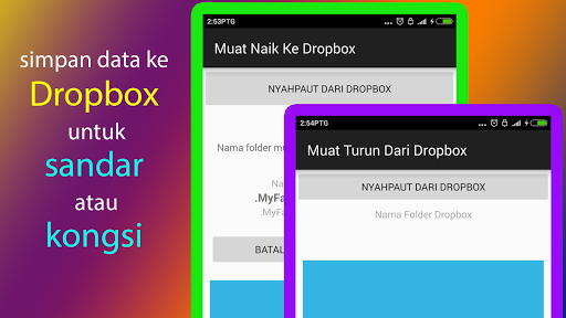 ● Pangkalan data dan foto profil kenalan boleh dimuat naik dengan mudah ke Dropbox. Data yang dimuat naik,boleh diguna sebagai sandaran atau untuk berkongsi dengan orang lain.