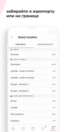 • Pilihan minyak wangi, alkohol, kosmetik, aksesori dan gula-gula dijalankan terus dari peranti mudah alih: mencari dan membuat pra-pesanan dari telefon pintar atau tablet anda.