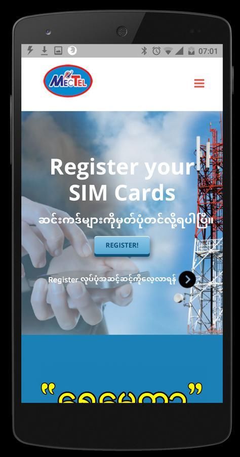 မိမိတို႔ရဲ့ ဆင္းမ္ကဒ္မ်ားကို အြန္လိုင္းကေနအလြယ္တကူမွတ္ပုံတင္လို႔ရနိုင္မယ့္ App ျဖစ္ပါတယ္။