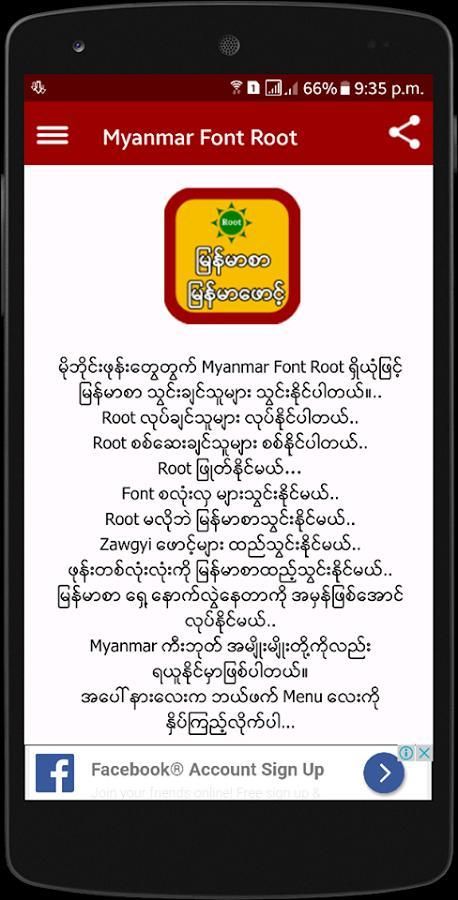 မိုဘိုင္းဖုန္းေတြတြက္ Myanmar Font Root ဆိုတ့ဲ ေဆာ့၀ဲေလး