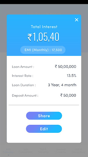 NG EMI Calculator adalah alat pengiraan mudah yang membantu mengira EMI pada pelbagai jenis pinjaman. Sesiapa sahaja boleh menggunakan aplikasi ini untuk mengira EMI mereka (Equated Monthly Installment) dan merancang pembayaran pinjaman mereka dengan cara yang berkesan. Aplikasi ini adalah Alat Kewangan canggih dan membantu membuat pengiraan pinjaman dan perbandingan antara pinjaman yang berbeza menjadi mudah. Aplikasi pintar dan berguna ini adalah penyelesaian sehenti untuk pengiraan kewangan anda.