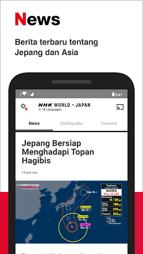 Bahasa Arab, Bengali , Burma, China, England, Perancis, Hindi, Indonesia, Korea, Farsi, Portuguis, Rusia, Sepanyol, Swahili, Thailand, Turki, Urdu, Vietnam - Berita Terkini Mengenai Jepun dan Asia - Pemberitahuan untuk Maklumat Gempa Kecemasan dan Tsunami * Bahasa Inggeris dan Bahasa Cina
