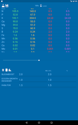 NPK Calculator adalah aplikasi untuk mengoptimumkan nisbah makronutrien dan mikronutrien dalam larutan baja anda untuk digunakan dalam hidroponik atau tanah.Pangkalan data dalam aplikasi kami mengandungi banyak baja sederhana dan kompleks di pasaran.Beberapa program pemakanan oleh penanam pengetahuan dengan pengalaman jangka panjang tersedia dalam tab pratetap.