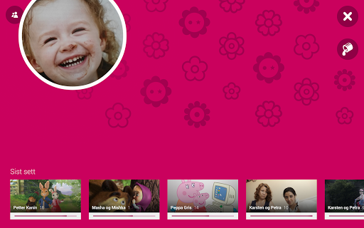 Her finner du alle barnas favorittprogrammer fra NRK Super, de kan se TV-programmer direkte eller om igjen. Appen er designet for barnefingre med store trykkflater og gjenkjennelige bilder, det er lett å finne innhold selv og videoer spilles av umiddelbart i stor skjerm.