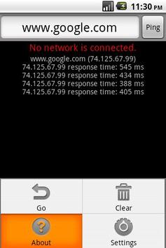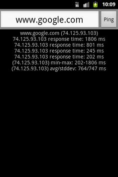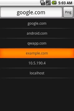 If you have pinged more than one host, the most recent hosts will appear in a list when you touch or click the host entry field at the top of the screen.