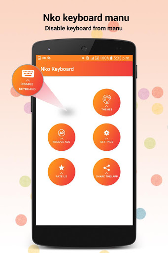 With the help of Nko keyboard you will write in Nko language. You can write emails and update your status on all social platforms and you can use Nko keyboard with all messenger apps to write messages in Nko language through Nko typing app. By Nko Keyboard you can write in Nko language in your cell phone.