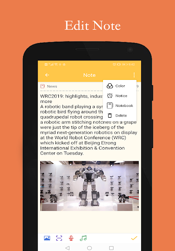 ✔️Rich text editor that you can input text, photos and musics into a note