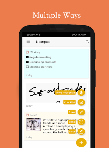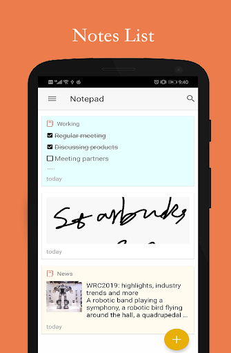 In this notepad with a friendly interface and many features, you can create note whenever possible, and you can manage the notes wherever.