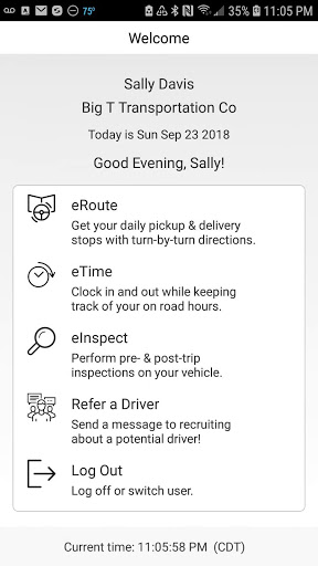 Persediaan adalah mudah. Muat turun aplikasi, log masuk menggunakan nama pengguna dan kata laluan Etruckbiz anda, dan anda sedang dalam perjalanan!