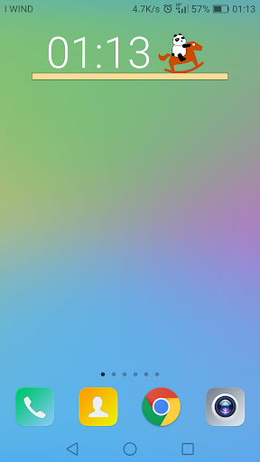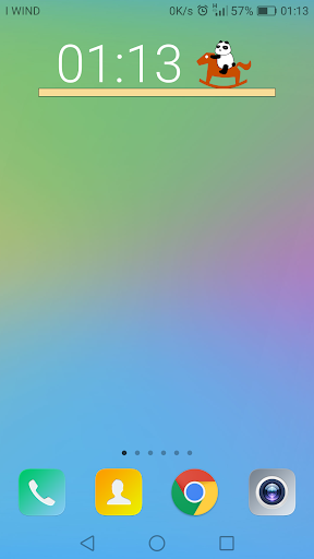 This app is just a widget you can put on your homescreen. It contains a clock allows access to your default system clock app and a panda on a rocking horse. It seems angry but is cute anyway :D. Try to tap on it!!