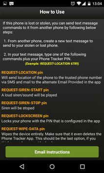 Will send location of the phone to the trusted phone number via SMS and mail to the alternate Email Provided in the app