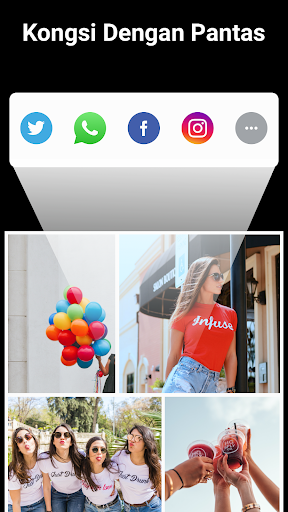 - Satu ketik untuk kongsi kolaj foto anda ke WhatsApp, Instagram, Facebook dan ke media sosial lain.