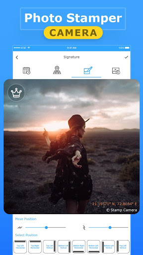 Photo stamper is a free camera application made for adding timestamp(datetime,location,brand logo,signature) to your favorite photos.With one of the best auto stamper app for photos, you can easily stamp your saved gallery photos, camera pictures and selfies with date, time, GPS location, custom signature text and logo watermark, absolutely free.
