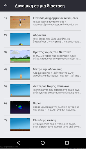 Aplikasi ini bertujuan, dengan kata-kata sederhana dan dengan cara yang menyenangkan, untuk membantu memahami konsep asas Fizik. Aplikasi ini merangkumi: