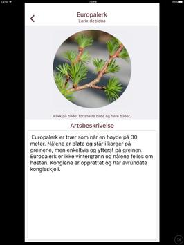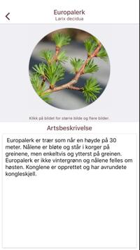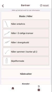 Appen inneholder en identifikasjonsnøkkel. Med identifikasjonesnøkkelen i appen kan du finne fram til trær som naturlig hører hjemme i Norge pluss noen av de vanligste innførte artene. Denne nøkkelen er hovedsakelig beregnet for bruk i vekstsesongen, hvor man har tilgang til blader, blomster og frukt. Identifikasjonsnøkkelen mangler fortsatt litt bilder, men dette vil kommer når bladene har sprunge ut.