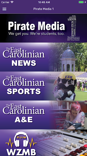 Pirate Media 1 adalah aplikasi rasmi untuk ECU Student Media.Melalui aplikasi tersebut, Pirate Media 1 bertujuan untuk memberi penonton akses mudah ke kandungan dari The East Carolinian, The Agency, Anchors Away, The Hook, Rebel, Expressions dan WZMB 91.3 FM.