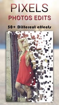 PIXELS PHOTOS EDITS is simple in use, but powerful, photo editing tools to apply particle dispersion or pixel effect. PIXELS PHOTOS EDITS - Make your Photo look like its bleeding Pixels from photo to create awesome looking Pixel Effect. Pixel Effect has variety of bleeding pixels in various styles.