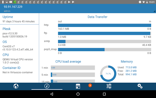 * Lihat maklumat pelayan: OS, CPU, versi Plesk dan sebagainya