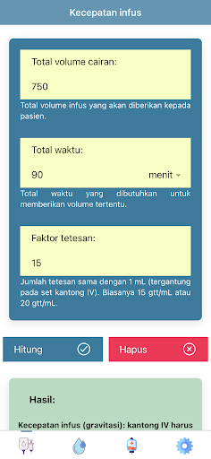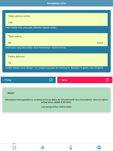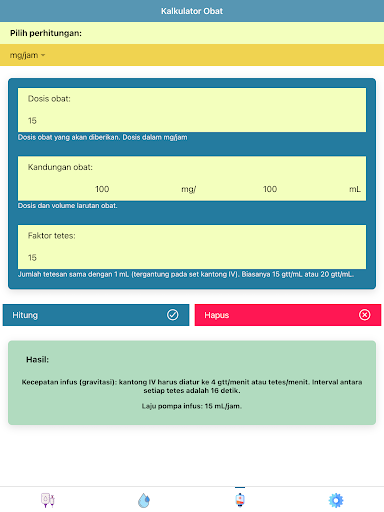 🔸 kalkulator infusi yang mudah dan tepat untuk drip intravena.