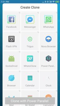 Support to create unlimited number of clones and multiple account. Fast, light and powerful, please choose Power Parallel.