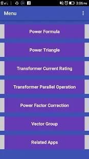 This app is a excellent tool for all Electrical Engineers, graduates , students and technicians. This app contains transformer loading related calculations including Voltage, Current, Power, Single/Three Phase Active/Reactive/Apparent Power, Power Factor improvement calculations, Transformer parallel operation Calculations and Vector groups.