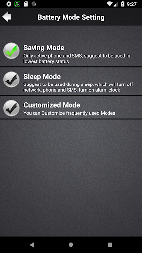 Aplikasi Penjimat Bateri yang hebat memberikan ciri terbaik untuk menjimatkan masa bateri telefon atau tablet anda. Bila-bila masa bateri hampir habis atau terlalu banyak maka ketik aplikasinya untuk menghidupkan mod penjimatan.