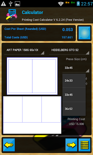 Printing Cost Calculator is an application that is used to calculate the offset printing costs. This calculator allows you to calculate the total cost of printing, and get the best price for your customers. With a few clicks, and no more than 10 seconds, you will get the total cost and best price for your customers. This calculator will save your time in calculation of prices, you also do not have to mess with the manual calculation which need more time.