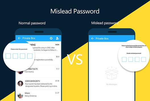 ✔ Two different passwords to avoid snoopers, mislead password show ‘no message’