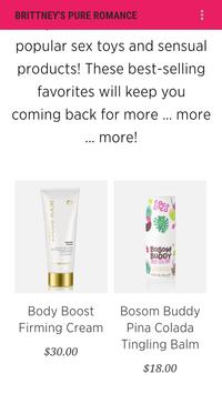 This is a app to connect you to Brittney's Pure Romance shopping page. Give you an more private shopping experience. All orders handled online and shipped discreetly to your door. Everyone is welcome to order anywhere in the US or Canada.