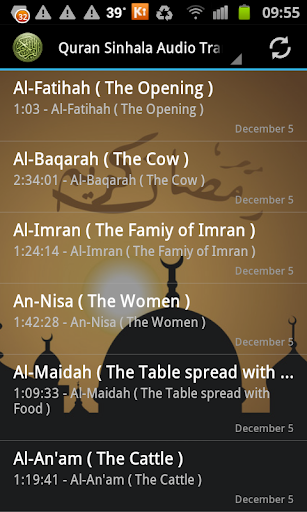 semua fail audio adalah set lengkap dari Al -Qur ' bersama dengan ayat Sinhala-Di-Verse Translation