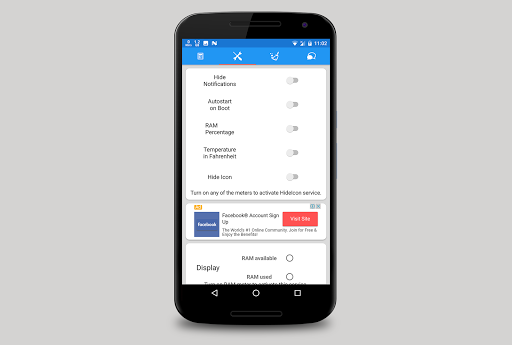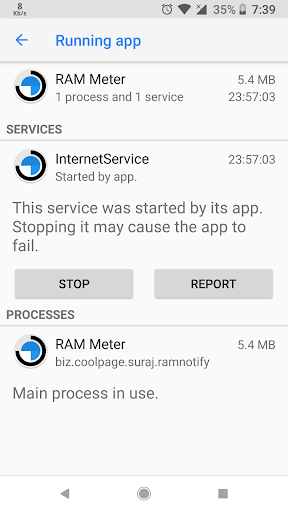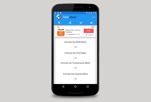 RAM Meter is lite weight app which provides many other feature similar to RAM meter such as Temperature Meter, CPU Meter, Internet Speed Meter and Signal Strength Meter all under same roof.