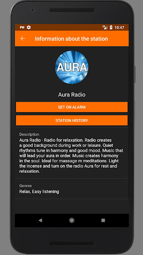 - Alarm clock will start playing your favorite station at the specified time.