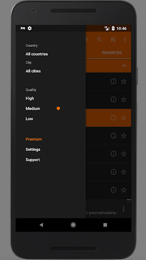 You can select the most suitable stream quality for you - using stream quality selector. Poor connection? Playback stops too often? Select traffic efficient mode (Low quality) - even in this mode sound quality stays very high. If you have stable and fast internet connection - listen to the radio at its best sound quality (High and Medium stream quality). Sound quality stays great in any mode!