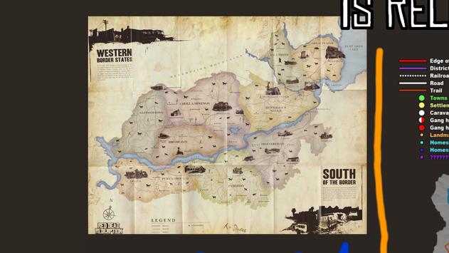 The games map world takes place northeast from the original games world map. This and many other hints given by Rockstar Games, have led fans to believe that in Red Dead Redemption 2 on top of a new map Rockstar Games have created, you will be able to play on the map of the original game as well 'Red Dead Redemption (1)'. That is why you can view the map of the previous game as well in this app.