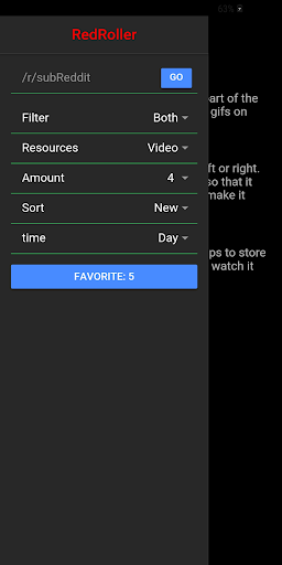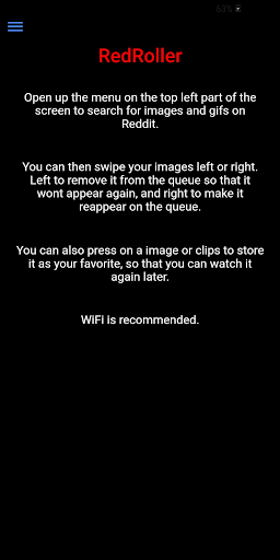 RedRoller is a fullscreen and gifs viewer for Reddit. Just type the subreddit you want to watch, swipe left or right to watch the content again or remove it from the flow. Making images and/or gifs to "roll" for you. You can also press to store it in a favorite list locally on your phone.